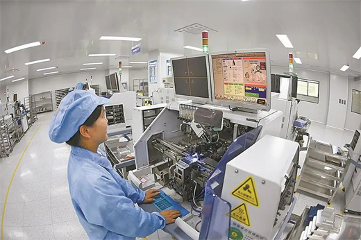8月2日,在湖北云川光電科技有限公司(簡(jiǎn)稱云川光電)車間,工人正在生產(chǎn)電子元器件。