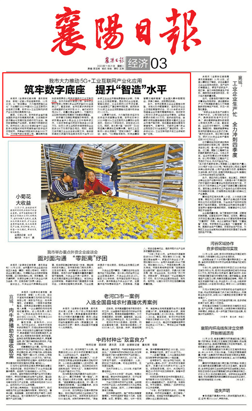 據(jù)悉,今年以來,我市搶抓全省打造全國數(shù)字經(jīng)濟發(fā)展高地機遇,以實施數(shù)字技術(shù)融合化發(fā)展攻堅突破行動為主線,推動數(shù)智賦能產(chǎn)業(yè)煥新,取得較為明顯的成效。我市成功入選2023年湖北省中小企業(yè)數(shù)字化轉(zhuǎn)型試點城市和首批省級數(shù)字經(jīng)濟示范城市,獲得省級財政獎補資金3000萬元。萬洲電氣股份有限公司、襄陽美利信科技有限責(zé)任公司獲評國家級工業(yè)互聯(lián)網(wǎng)平臺,東風(fēng)汽車股份有限公司、華中藥業(yè)股份有限公司等5家企業(yè)獲評省級5G全連接工廠。截至目前,全市已累計獲評數(shù)字化領(lǐng)域國家級試點示范18個、省級試點示范254個,總量位居全省第二,為推動工業(yè)互聯(lián)網(wǎng)創(chuàng)新應(yīng)用奠定了數(shù)據(jù)資源基礎(chǔ)。