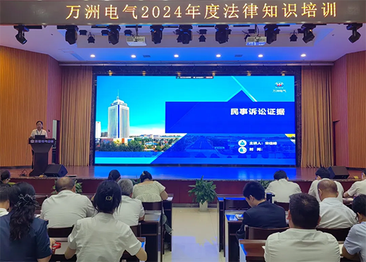 為增強(qiáng)員工法律意識(shí),規(guī)范員工在民事訴訟證據(jù)收集方面的方式方法。7月3日,萬(wàn)洲電氣企業(yè)發(fā)展部在一樓多功能廳開(kāi)展了民事訴訟法律知識(shí)培訓(xùn),萬(wàn)洲電氣全體在家干部及重要崗位40余人參加培訓(xùn)。