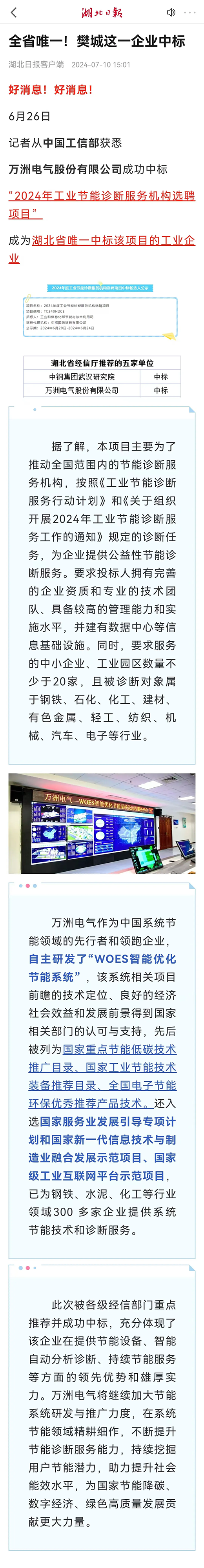 此次被各級(jí)經(jīng)信部門重點(diǎn)推薦并成功中標(biāo),充分體現(xiàn)了該企業(yè)在提供節(jié)能設(shè)備、智能自動(dòng)分析診斷、持續(xù)節(jié)能服務(wù)等方面的領(lǐng)先優(yōu)勢(shì)和雄厚實(shí)力。萬洲電氣將繼續(xù)加大節(jié)能系統(tǒng)研發(fā)與推廣力度,在系統(tǒng)節(jié)能領(lǐng)域精耕細(xì)作,不斷提升節(jié)能診斷服務(wù)能力,持續(xù)挖掘用戶節(jié)能潛力,助力提升社會(huì)能效水平,為國(guó)家節(jié)能降碳、數(shù)字經(jīng)濟(jì)、綠色高質(zhì)量發(fā)展貢獻(xiàn)更大力量。