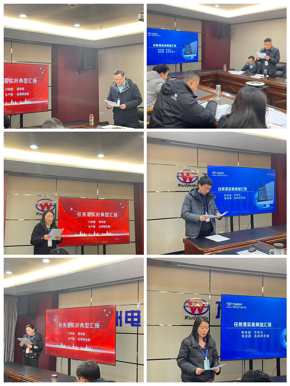 會(huì)上,產(chǎn)品大部、市場(chǎng)大部、研發(fā)大部、管理大部四個(gè)大部分別推選出落實(shí)最好和最差的部門參加比拼。各匯報(bào)部門圍繞“任務(wù)落實(shí)率、落實(shí)成效、未落實(shí)原因、后續(xù)落實(shí)措施”等對(duì)五項(xiàng)重點(diǎn)任務(wù)展開總結(jié)匯報(bào)。通過數(shù)據(jù)展示、目標(biāo)比對(duì)等方式曬出“成績(jī)單”、明確整改項(xiàng)。