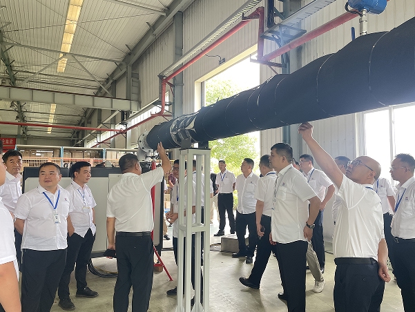 隨后,大家來到車間,現場學習觀摩磁懸浮風機模擬運行情況,參訓人員仔細觀察設備,相互交流討論,學習勁頭十足。