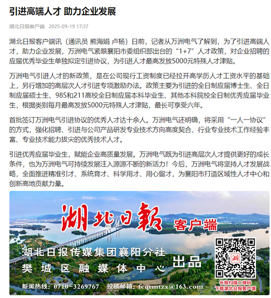 [湖北日報客戶端訊] 萬洲電氣:引進高端人才 助力企業...