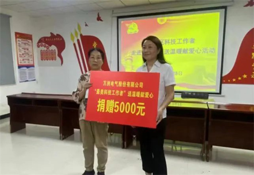 近日,“襄陽市最美科技工作者”獲得者、萬洲電氣總工程師趙世運得知樊城區星月社區趙有娣老人家突遭火災、生活十分困難時,積極響應樊城區科協的號召,主動為趙有娣一家捐助善款5000元,送上了萬洲電氣和科技工作者的愛心和關懷。