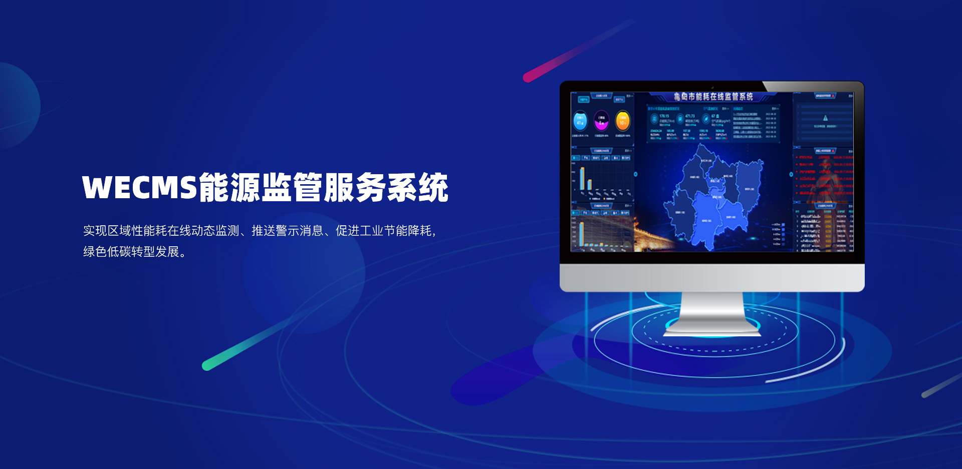 能源監(jiān)管服務系統(tǒng)充分利用現(xiàn)代信息化、網絡化、大數(shù)據分析技術,通過建立政府級能源數(shù)據管理中心,形成集數(shù)據匯總、數(shù)據存儲為一體的節(jié)能減排數(shù)據庫,主要從耗能與碳排放兩方面對各行業(yè)重點用能單位的能源消耗量、能效水平進行實時監(jiān)測、在線監(jiān)管,建立科學的能源管理考核指標體系,為政府部門科學配置能源資源,統(tǒng)籌規(guī)劃節(jié)能管理工作提供重要科學依據,實現(xiàn)區(qū)域性能耗在線動態(tài)監(jiān)測;利用大數(shù)據分析挖掘技術和在線分析診斷技術,及時發(fā)現(xiàn)能耗異常現(xiàn)象并推送警示消息,促進工業(yè)節(jié)能降耗,綠色低碳轉型發(fā)展。